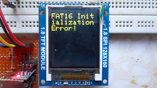 If there is no SD card or there is a problem while the initialization of the SD card and FAT16 file system the display will show the message “FAT16 Initialization Error!”. This text is displayed using the function drawtext(x, y, text, text_color, background_color, text_size); .
