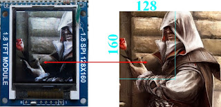 If the BMP image is not 128×160 the TFT screen will display the upper left 128×160 part as shown in this picture: